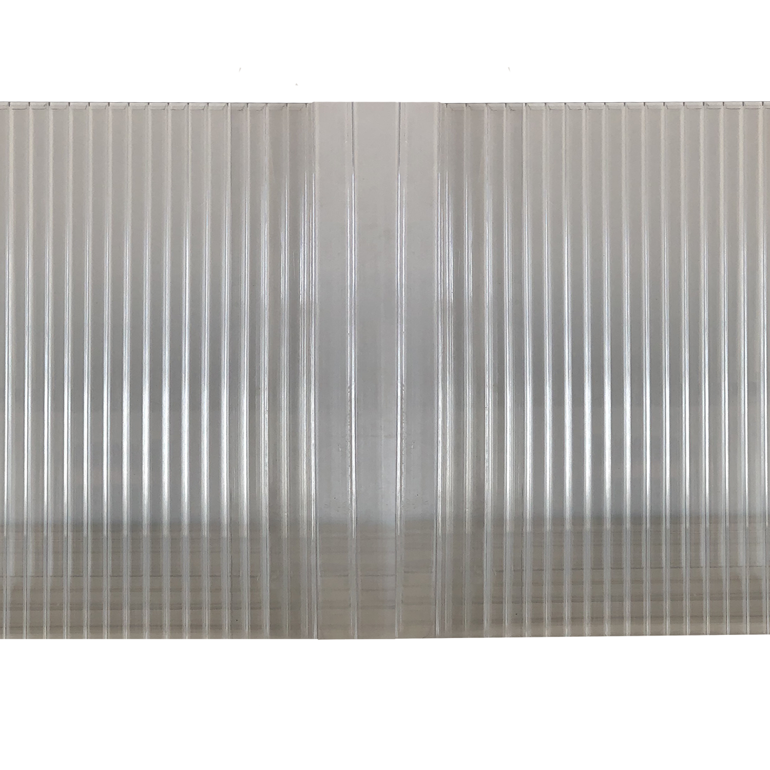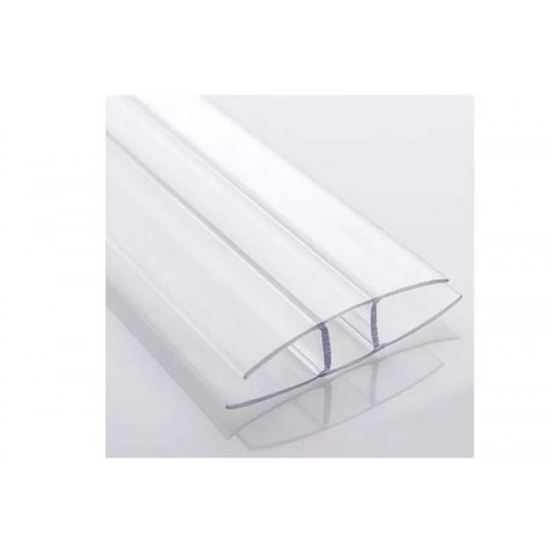 Il profilo ad H in policarbonato trasparente si applica alle lastre per congiungerle saldamente. Va sistemato in senso parallelo alla pendenza per evitare ristagno di acqua.